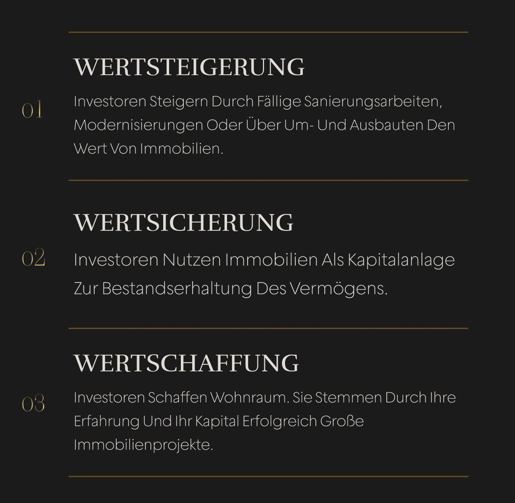 Das Beratungsgespräch hat ergeben, dass der Verkauf an einen Investor die beste Wahl ist? Nun finden wir für Dich den passenden Investor. Dabei präsentieren wir deine Immobilie geprüften Investoren und holen für Dich erste unverbindliche Kaufangebote ein.